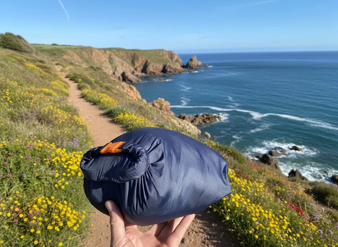Made from technical outdoor materials, tough and durable, cosy and warm, and has its own waterproof stuff bag attached.